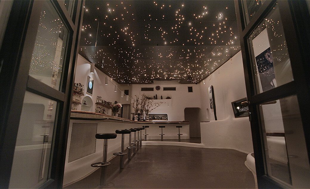 Designed by renowned Greek jeweler Minas, Astra's interior is a masterpiece of Cycladic elegance. The standout feature is its ceiling, which replicates the northern hemisphere's night sky using over 2,500 fiber-optic lights, pulsating in sync with the music. This celestial display creates a mesmerizing atmosphere that captivates guests from the moment they step inside.