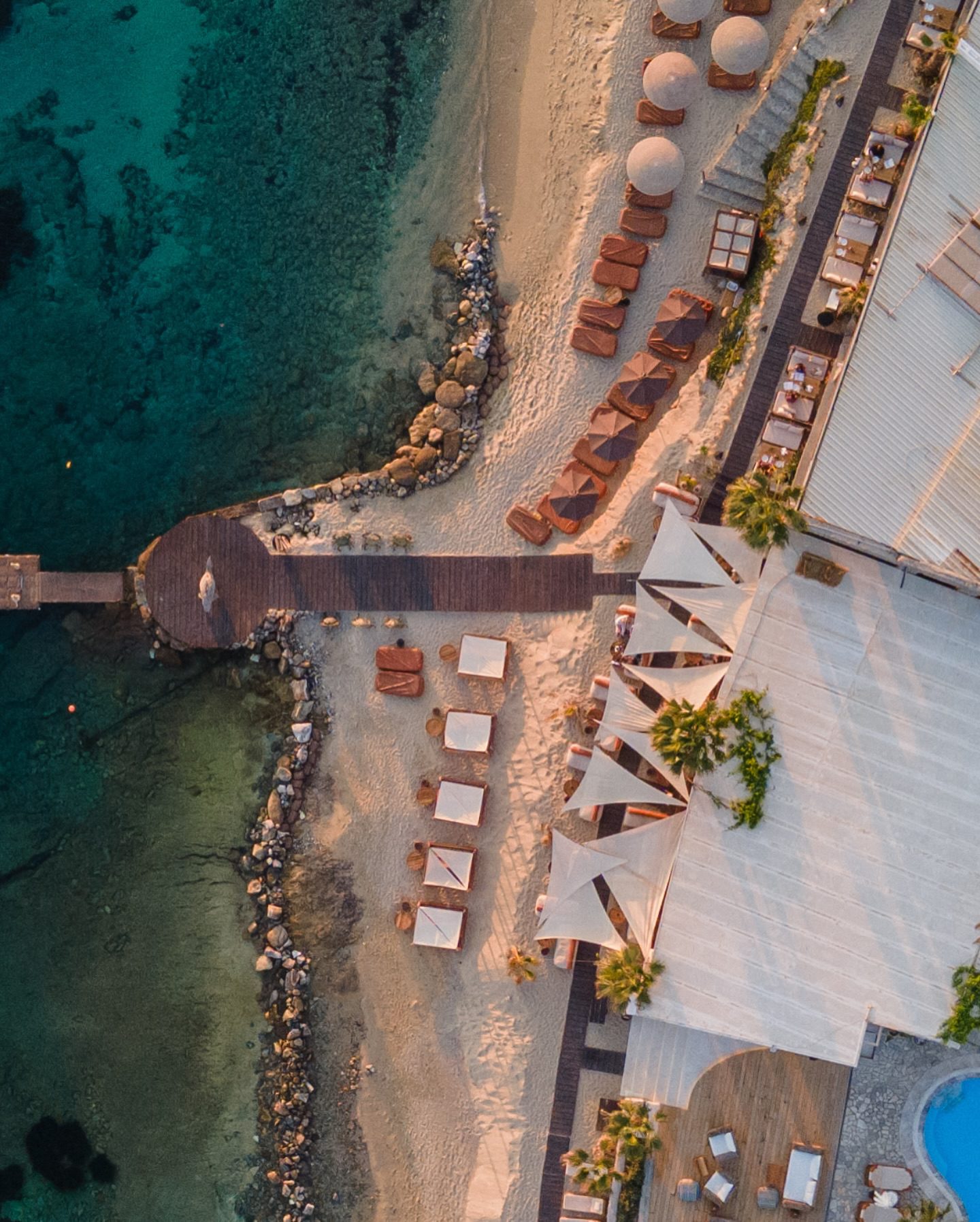 Popular items on the menu include fresh fish, lobster, sushi, and a variety of gourmet salads, as well as mezze plates for sharing. Guests can also enjoy a diverse selection of cocktails, fine wines, and refreshing drinks, served in the relaxed atmosphere of the beachfront lounge. The vibe here is effortless, with the perfect mix of casual beachside dining and gourmet flavors, all while enjoying the views of the Aegean.