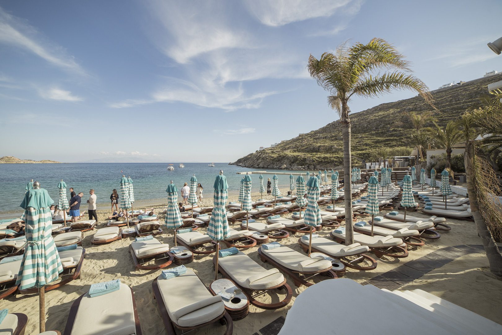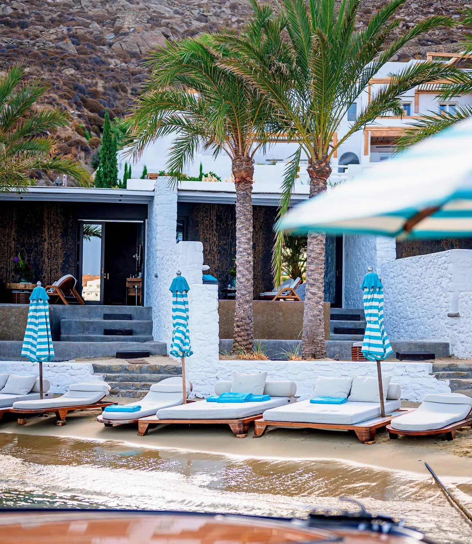 Location and Ambiance Nammos is located on Psarou Beach, one of the most sought-after beaches in Mykonos, known for its crystal-clear waters and chic ambiance. The beach itself is lined with private cabanas, stylish loungers, and umbrellas, offering guests both comfort and privacy while soaking in the Aegean sun. The venue’s atmosphere is sophisticated yet relaxed, creating an ideal setting to enjoy a day by the sea. Nammos blends seamlessly into the natural beauty of Mykonos, with modern, elegant design elements that enhance its upscale vibe. The stylish beach club and restaurant have become synonymous with luxury and refinement, offering a truly unique experience for those who want to indulge in the finer things in life.