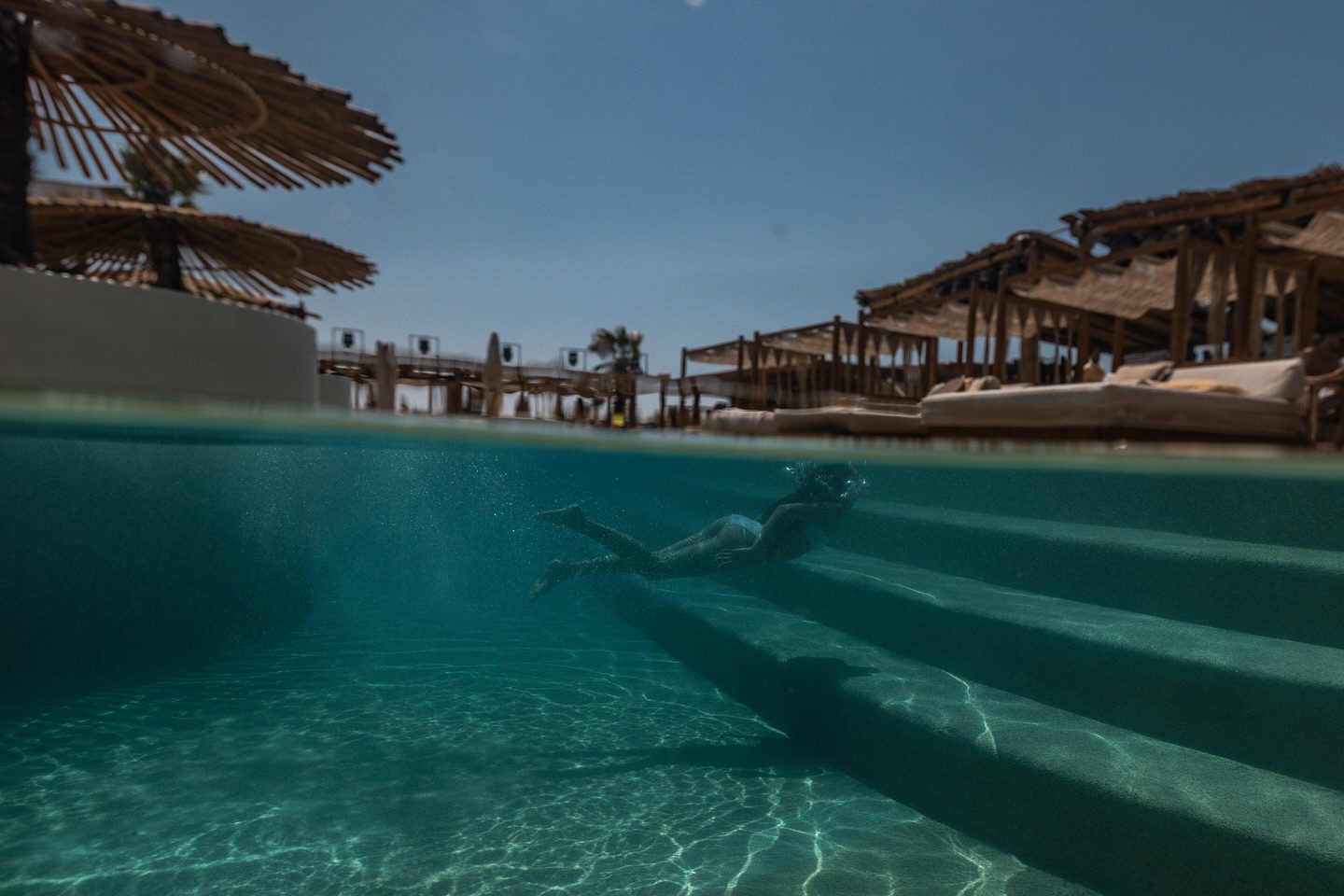 SantAnna is strategically located on the famous Paraga Beach, which offers clear turquoise waters and golden sand, making it the perfect setting for relaxation and partying. The venue is designed to blend seamlessly with its surroundings, with an aesthetic that incorporates both natural elements and modern luxury. The vibrant beach club exudes a chic, contemporary feel while maintaining an effortless connection with Mykonos' iconic, laid-back Mediterranean style.