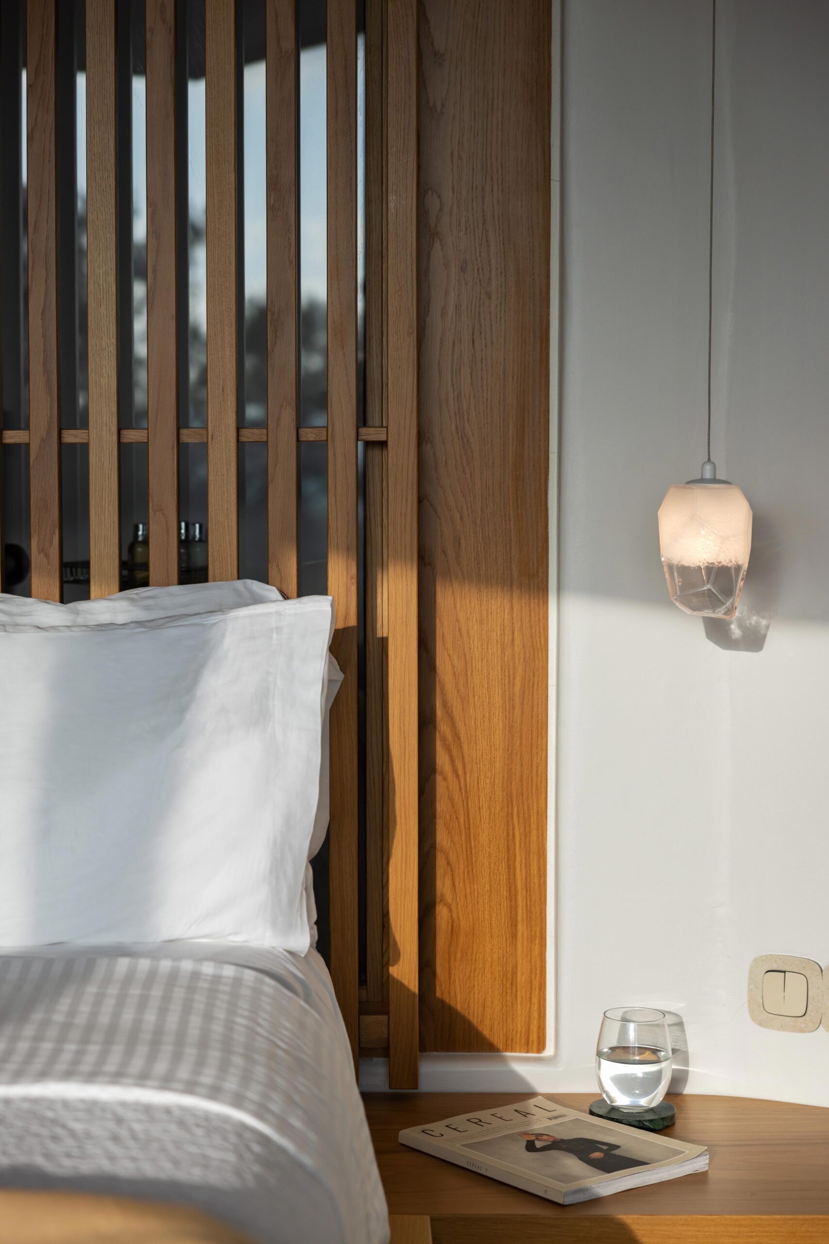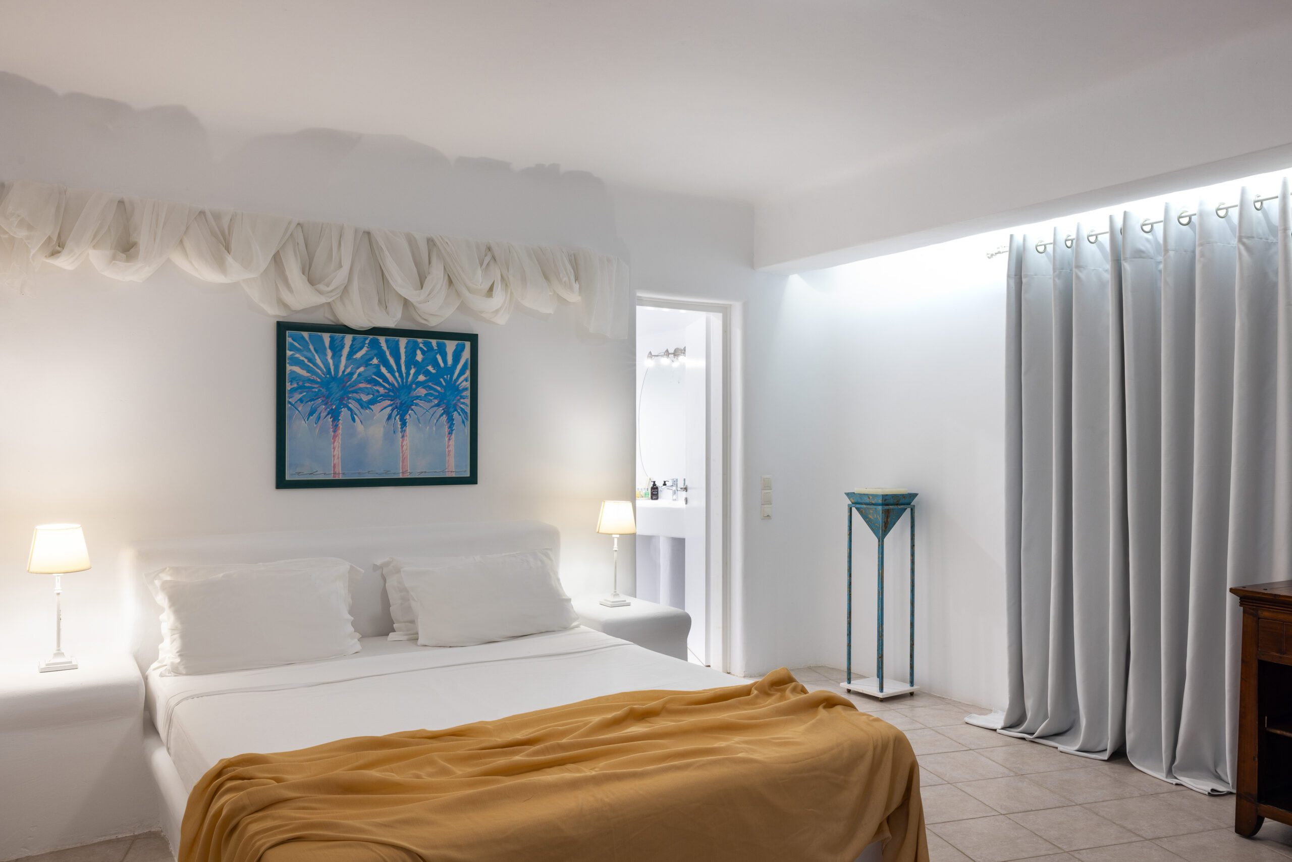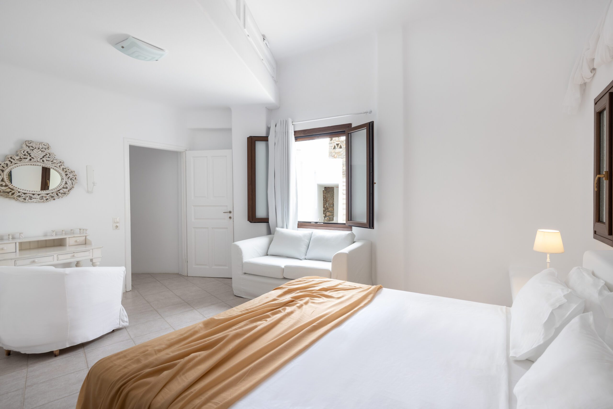 Pool Level: -Fully equipped kitchen, living room with satellite TV, indoor dining area for 6, breakfast bar with sea views, access to outdoor veranda with seating, lounge area, BBQ, and private entrance. Upper Level: -Extravaganza Suite [55 m²]: Super king-size bed, air conditioning, TV, safebox, mini-fridge, open-plan shower, and ensuite WC – terrace access via balcony doors. Garden Level: -Premium Suite [60 m²]: Super king-size bed, air conditioning, safebox, ensuite shower bathroom, kitchenette, separate living room – option to interconnect with Deluxe Room. -Superior Sea View Room 1 [ 30 m², ] King-size bed, air conditioning, mini-fridge, safebox, ensuite shower bathroom – balcony access to outdoor area. -Superior Sea View Room 2 & 3 [ 32, 35 m², ]: Super king-size bed, air conditioning, mini-fridge, safebox, open-plan shower, and ensuite WC – both with outdoor access via balcony doors.