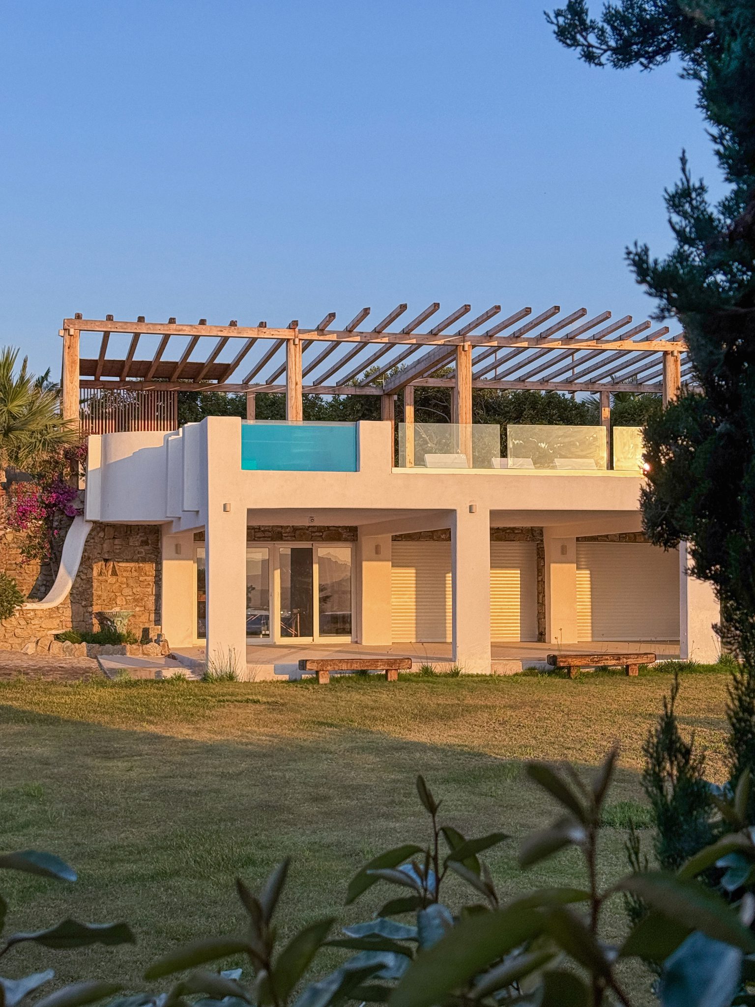The Villa Set amid the tranquil fields of Kalafatis, just a 10-minute walk from the beach, Alegria Estate offers an exceptional blend of luxury and serenity. The villa features refined modern design, an expansive Mediterranean garden, breathtaking views of the surrounding landscape and distant sea, and an impressive 250 sq.m. overflow swimming pool. Begin your day with a refreshing swim beneath the warm Grecian sun, followed by a delightful breakfast served at the villa’s restaurant. Later, unwind in the soothing Jacuzzi or enjoy a short walk to the nearby beach. As the evening unfolds, the barbecue area becomes the perfect setting for elegant alfresco dining, where authentic Greek flavors are savored against a backdrop of natural beauty. ALEGRIA Estate is the ideal event space for: Weddings Parties Intimate Events Corporate Events Wellness Retreats